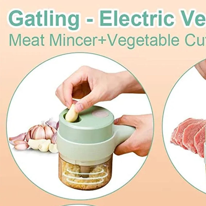 4 in 1 Hand Chopper is your vegetable slicer that eliminates all the excess strain and clutter that a knife and chopping board would cause. It is fitted with a powerful motor and a sharp blade that slices through veggies without a hassle.