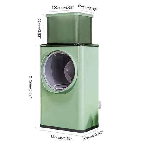 Material: ABS+PP+PET+304+420J2 Color: green Size: 28.5*13.5*9.2cm Net weight: about 0.93kg Function: slice/shred/mash