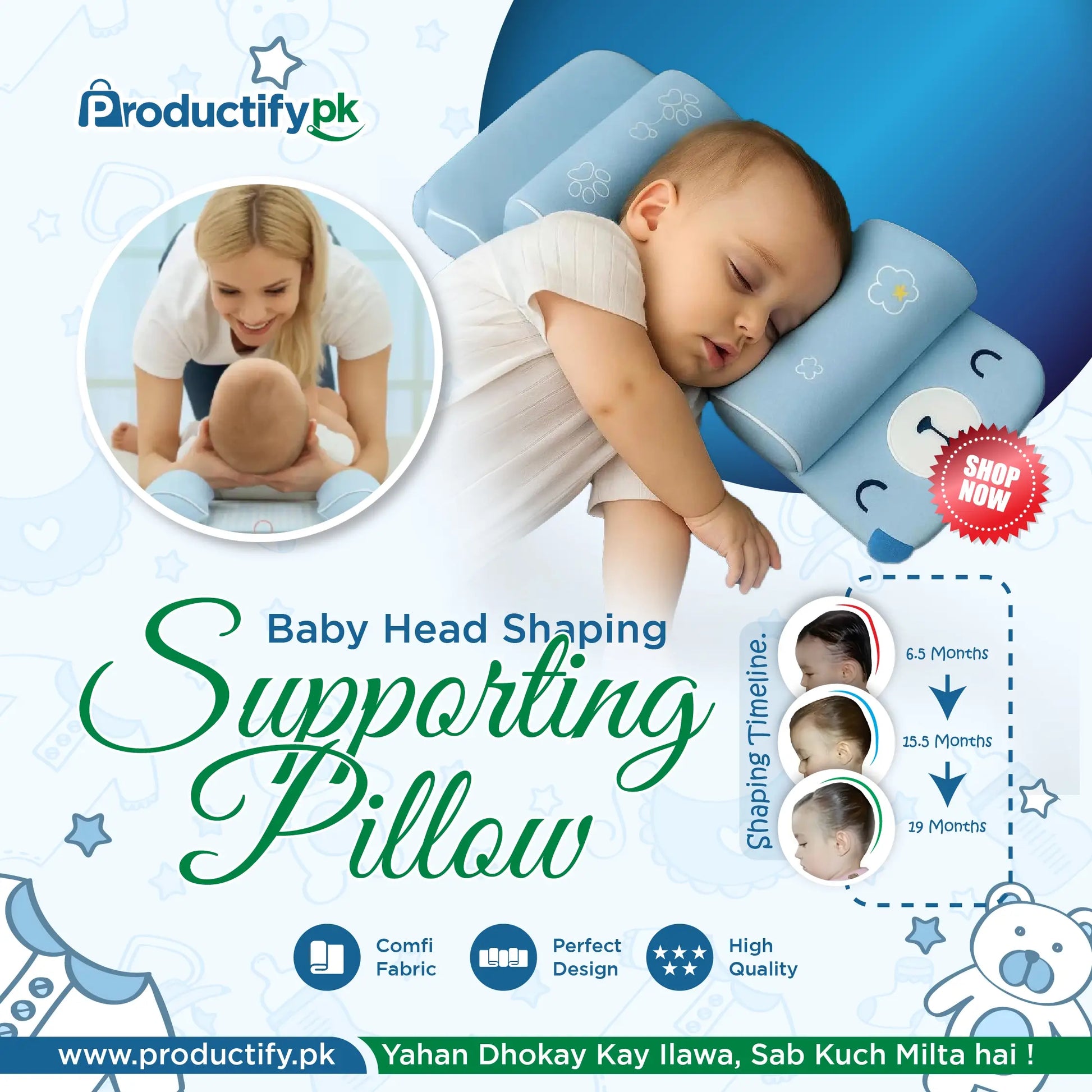 Expertly crafted to form a round head shape, which is highly sought after by mothers for its aesthetic and health benefits.