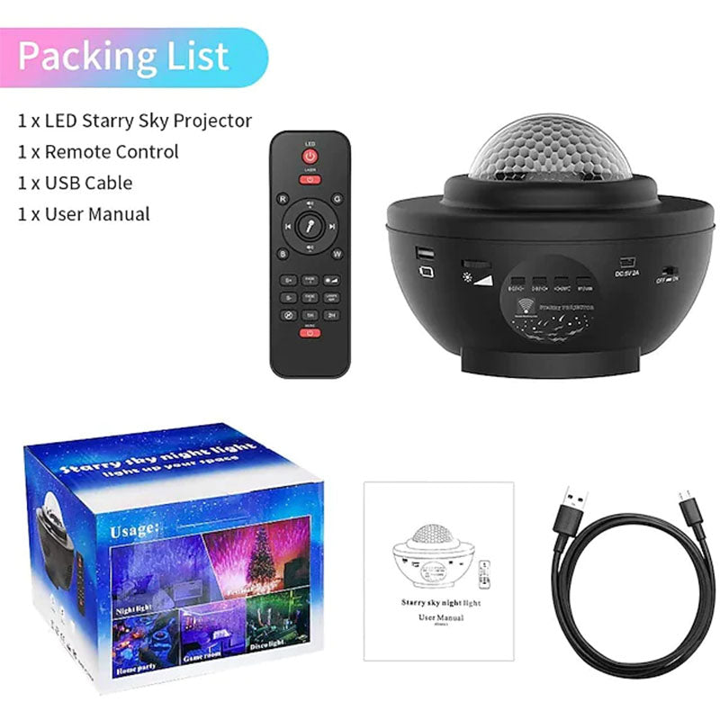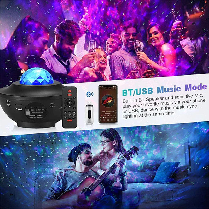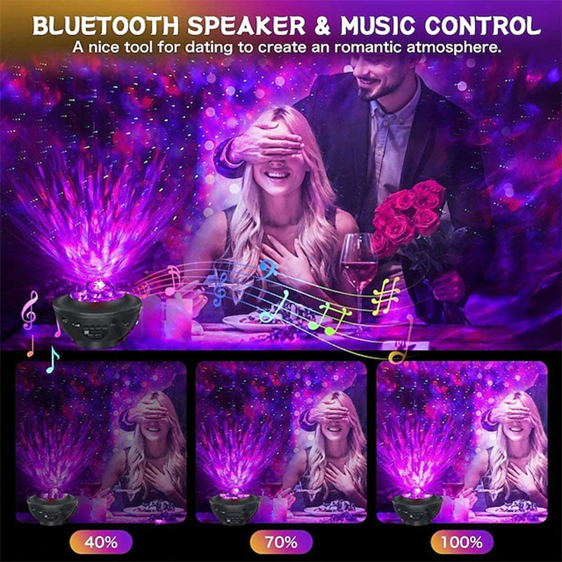 2.This product belongs to the combination of 10color water mark lamp and green laser. The water mark has four colors: red, white, blue and green. The laser color is green. The remote control can adjust the water mark color, water mark speed, water mark mode, bluetooth mode, water mark single control, laser single control, brightness, music control, sound control, selection mode, timing function, switch, any mobile phone or other device to turn on bluetooth. All can be connected without checking.