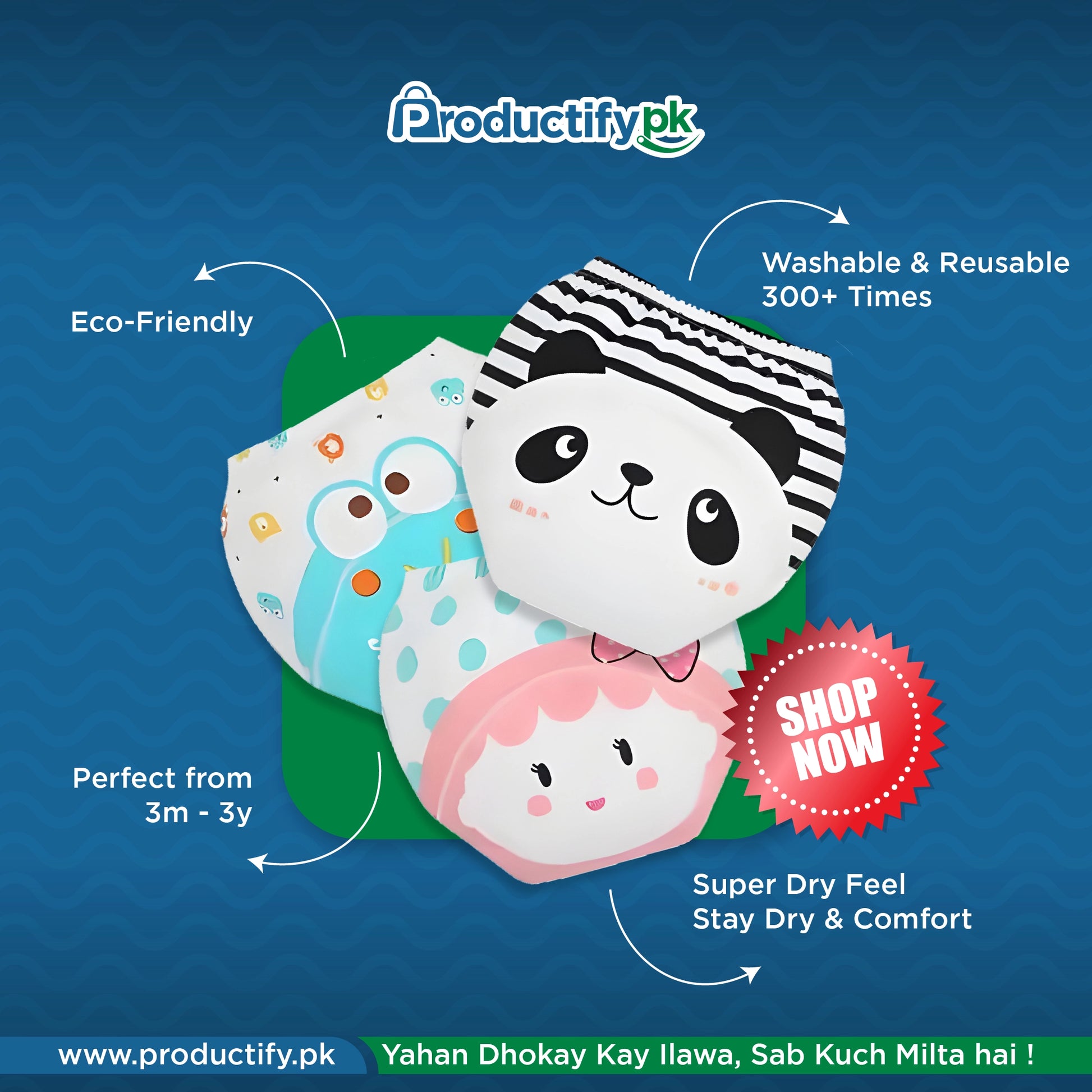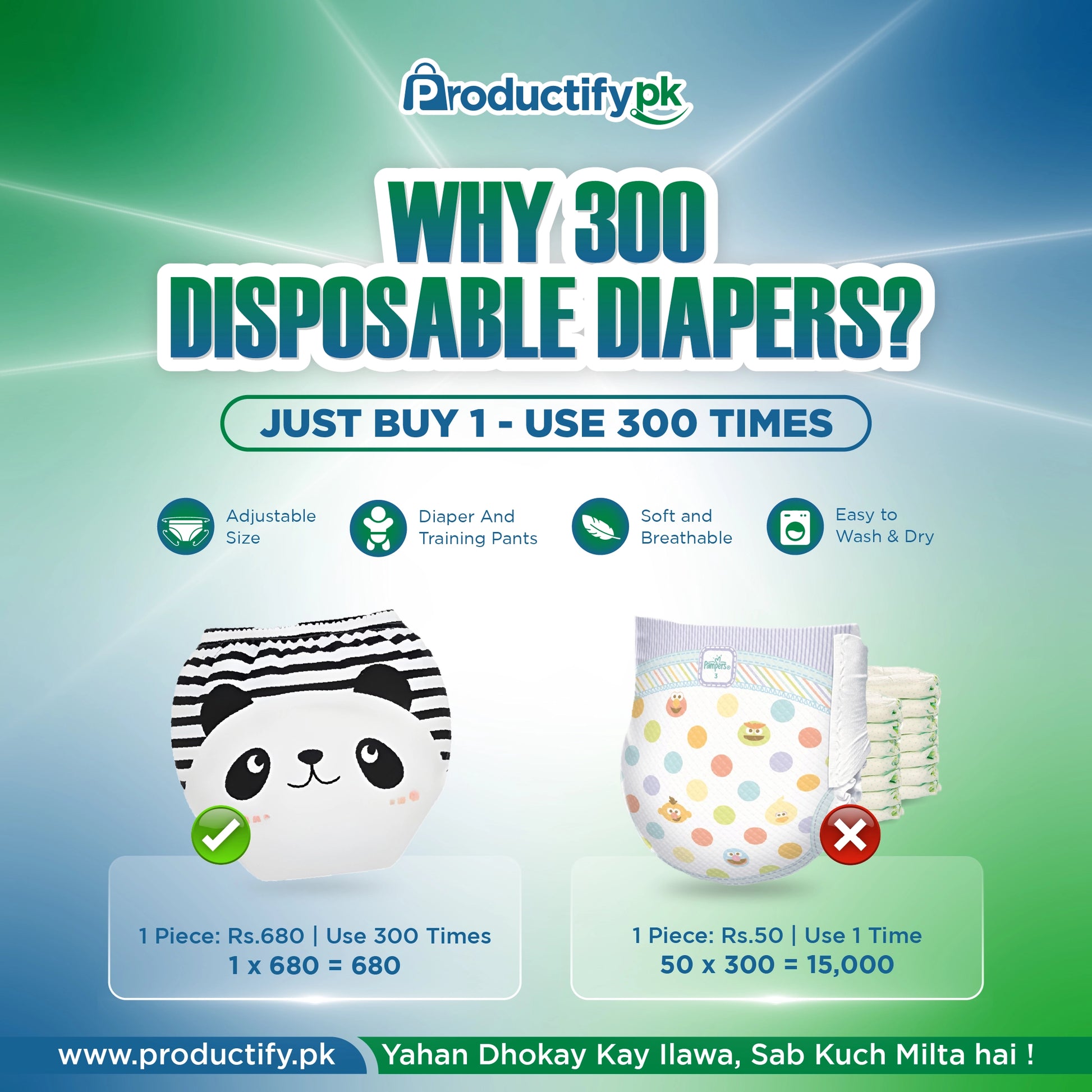 Say goodbye to disposable diapers and hello to long-term savings! With our Reusable Diapers, you’re making a one-time investment that saves you hundreds. Plus, with our 7-Day Money Back Guarantee, you can try them risk-free — if you're not completely satisfied, we’ll refund your purchase, no questions asked. Comfort, savings, and peace of mind, all in one!