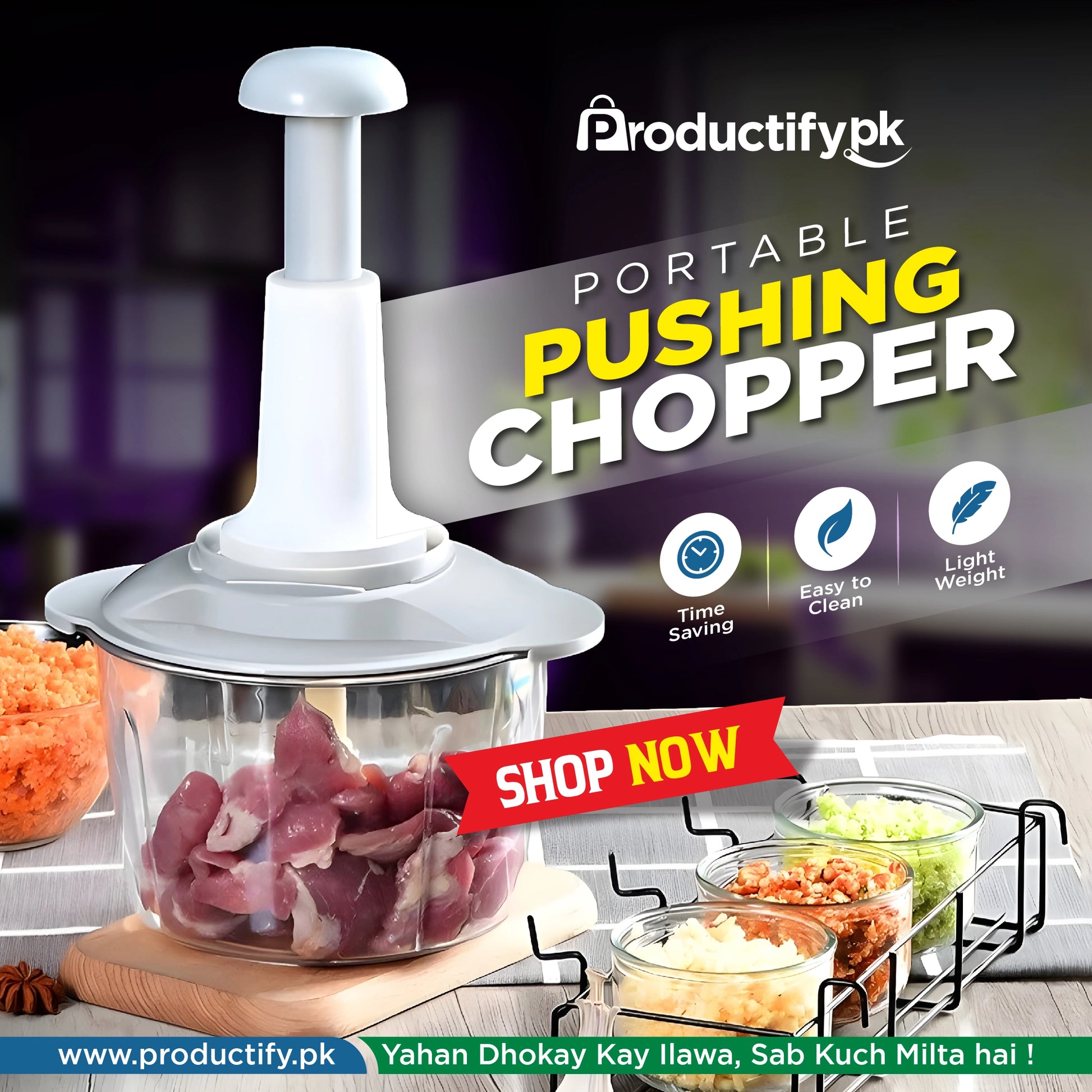 1x Hand Pushing Chopper Manual Press