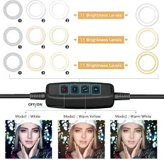 This ring light offers multiple brightness levels and color temperatures, allowing you to switch between warm, cool, and natural light for the perfect lighting setup.