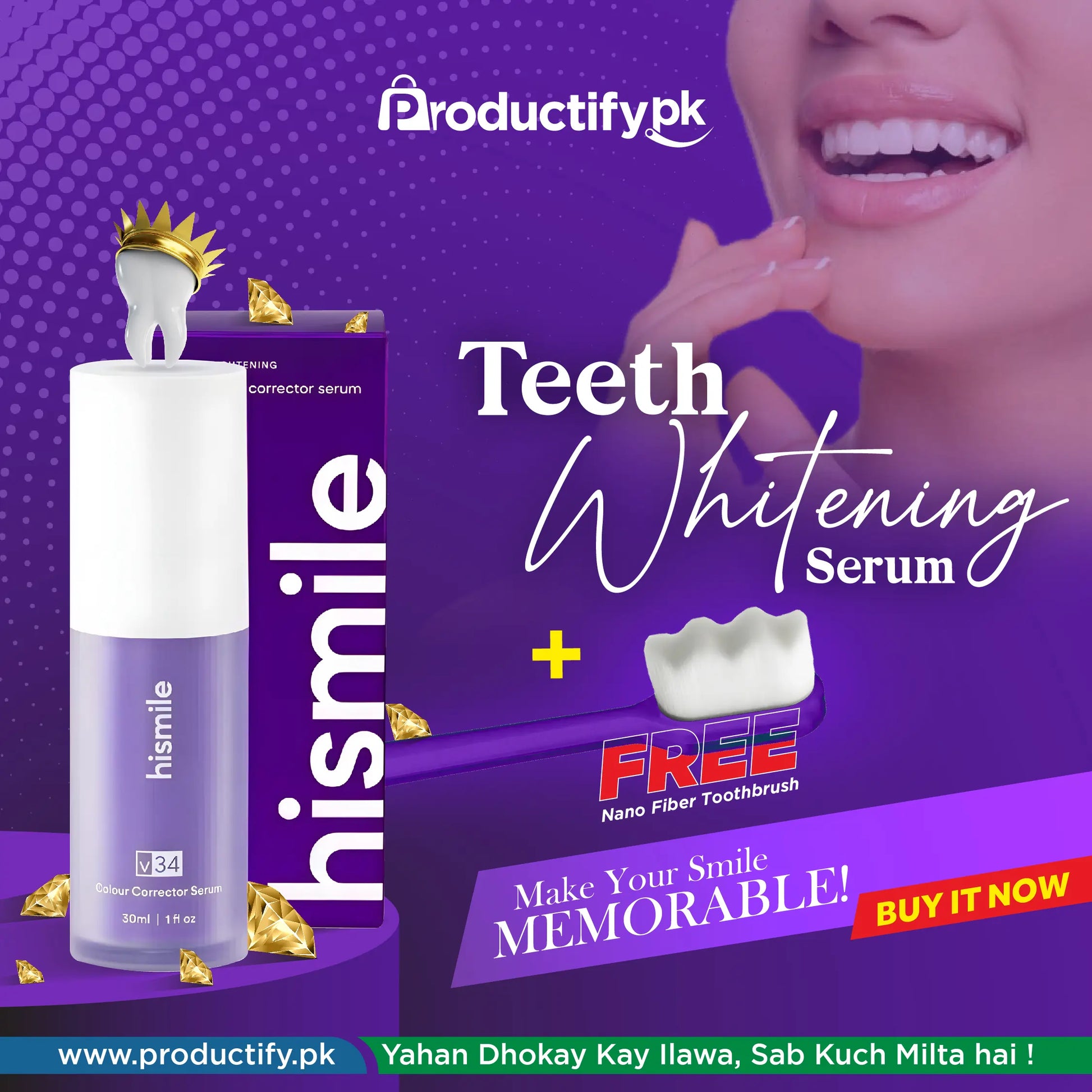 Utilizes a purple serum to neutralize yellow tones in teeth based on complementary color principles