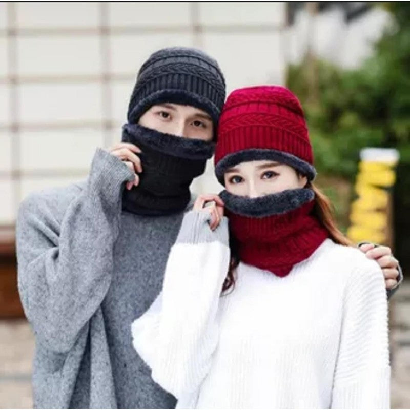 Winter Knitted Hat and Fleece Neck Warmer